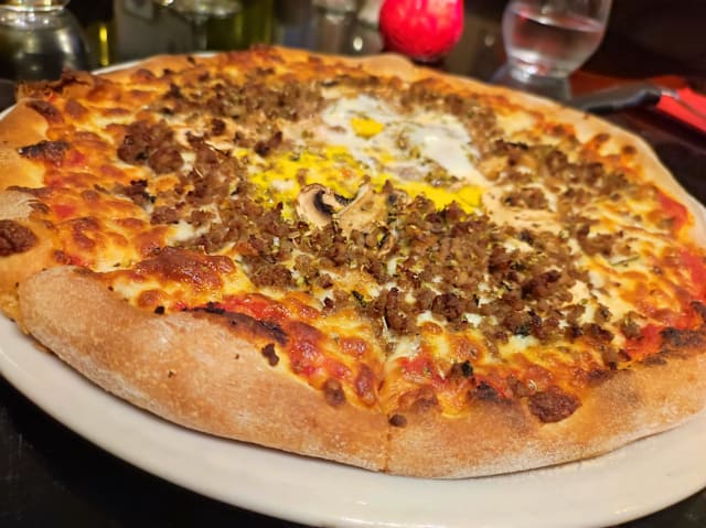 10/10Very tasty pizza, well cooked base. The lasagne was also tasty. Service was fast and friendly.