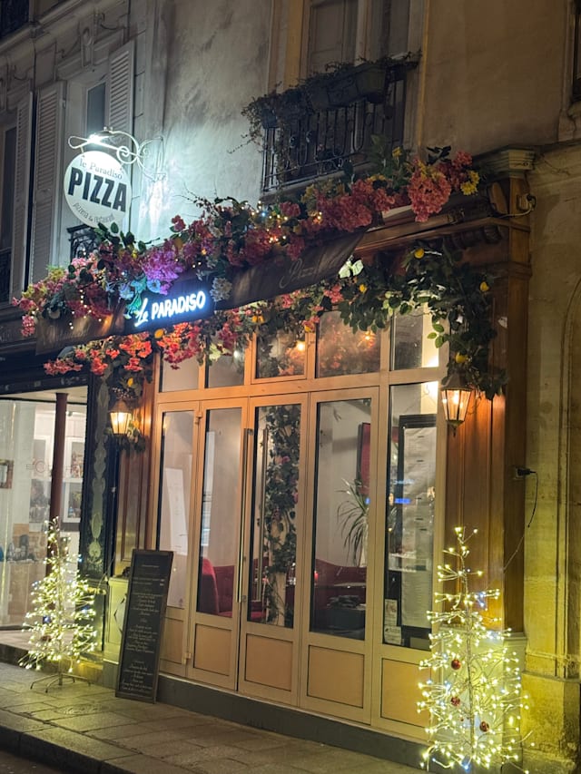 10/10My daughter and I came here our first night in Paris. It was a wonderful experience. The ingredients are very fresh-we had the bruschetta and we each got a pizza. The 4 saisons and a margherita pizza. We enjoyed them both. The crust was tasty as were the ingredients. I had a glass of their house Prosecco and it was delicious. With the appetizer I think we could have shared one pizza and then ordered a dessert.