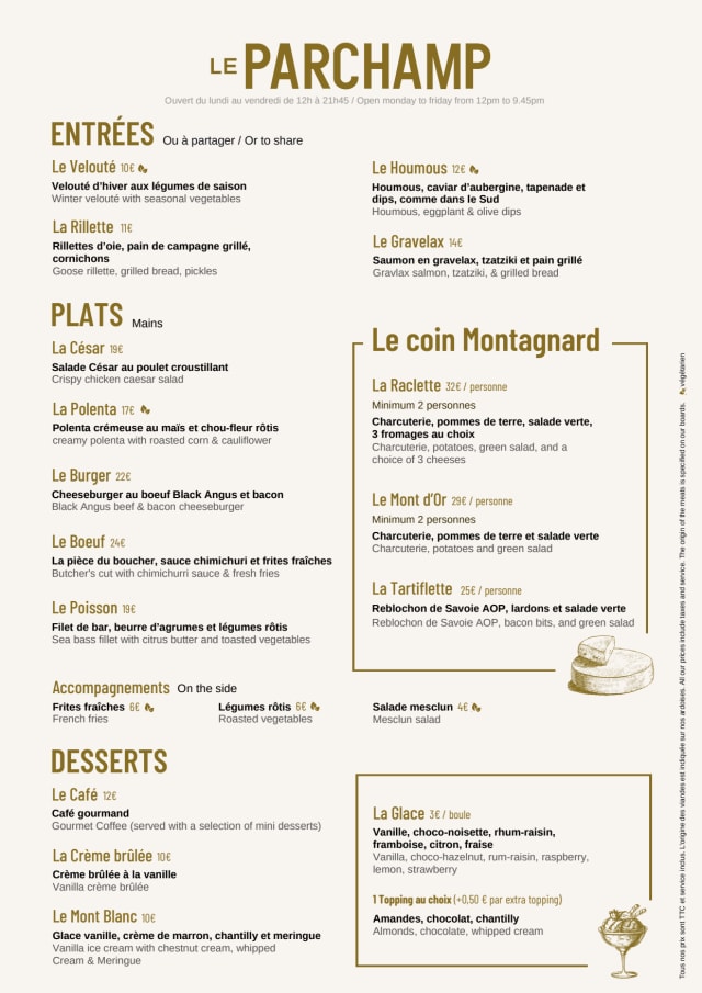 Le Parchamp is rated 7/10.TheFork users have rated accordingly in the following categories: