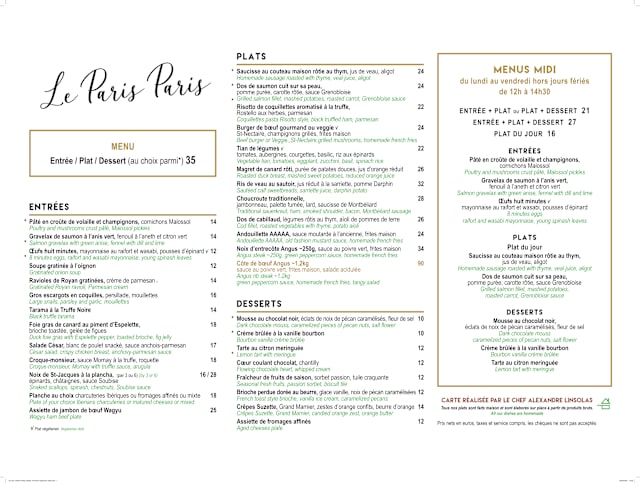 8.5/10Wanted to try a traditional French restaurant before we head home to England, so tried this lovely restaurant with polite staff and great service, food was delicious and enjoyed the steak.