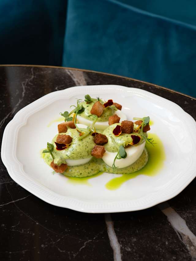- Œufs mayonnaise au persil, croûtons.
