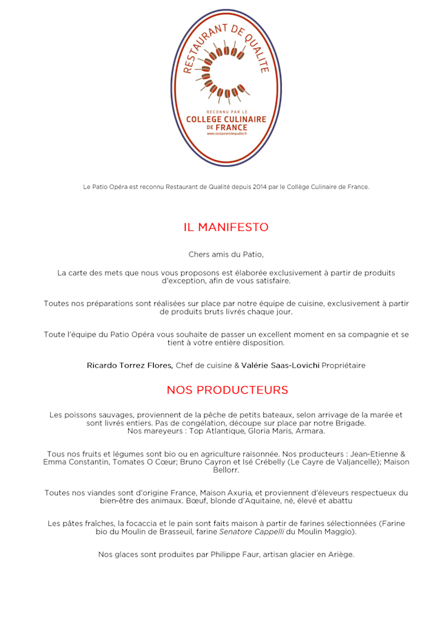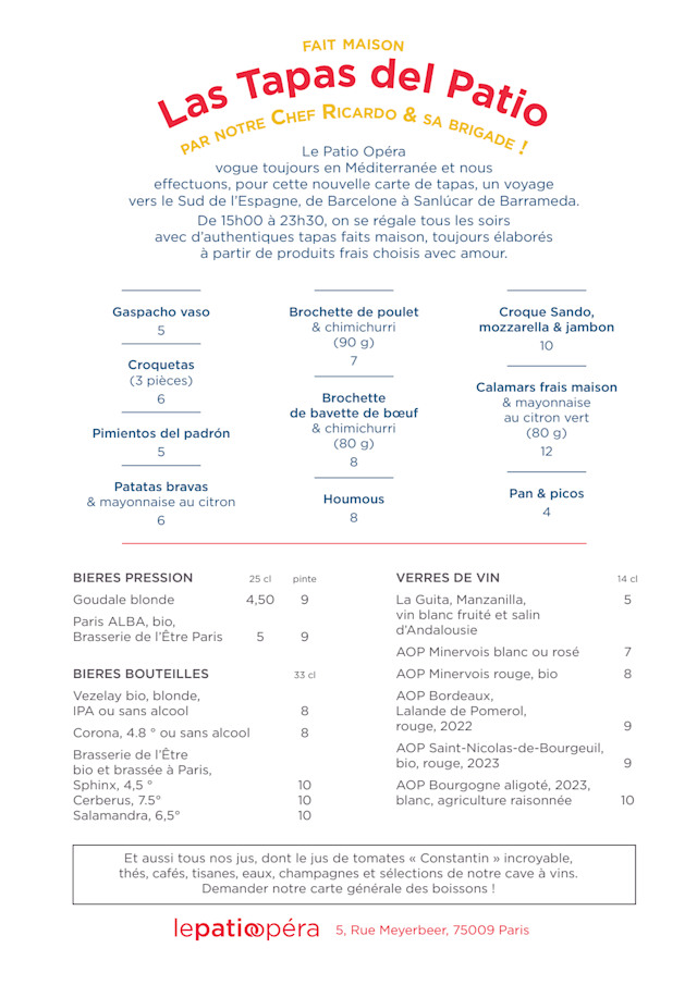 7ÈME ART GOURMAND - Valérie Saas-Lovichi, productrice de cinéma, a imaginé le Patio Opéra, lieu atypique pleinement dédié à la gastronomie, à l'expression artistique et à la fête. Réunis autour d'une terrasse intérieure style jardin méditerranéen, protégée afin d'en profiter toute l'année, Cantinett...