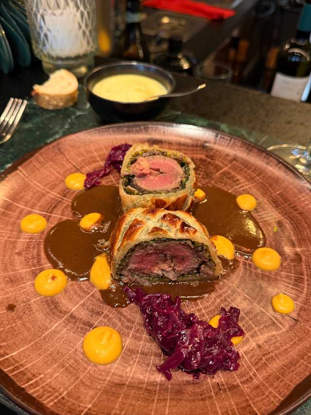 9.5/10Great autumn menu, a cozy seat at the bar in full view of the bustling kitchen, with a last minute reservation. A little mixup with the food order resulted in a Beef Wellington arriving instead of the oxtail raviole was deftly handled, effectively gifting the beef dish and later bringing the pasta ordered. All was delicious! Staff (even one from the kitchen) was friendly and attentive. Bonne table! Merci à l’équipe.