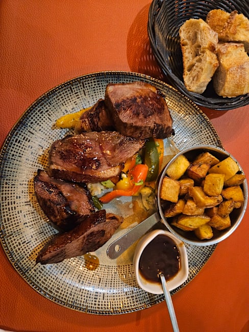 7/10Was expecting a more refined experience but food was more restocking than I expected. Too much creamy cheese sauce with the salmon ravioli. Steak cut was uneven so half was thick and cooked perfectly but other had was over cooked. Duck was requested pink but was bloody and so much of it so defeated my husband. Puddings were good.