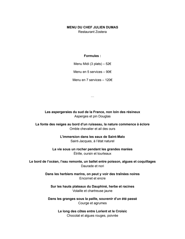In a residential street of the well-heeled 16th district, chef Julien Dumas (Lucas Carton, Bellefeuille - Saint James Paris) has settled down in this ...