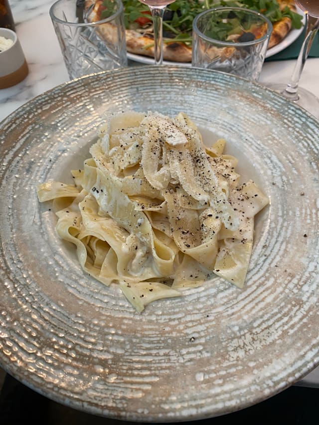 10/10Really good, truffle in abundance and great service. I will return to dine with my family. Such a lovely relaxed atmosphere too and the burratta and Salmon Pizza were great