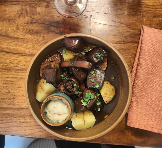9.5/10Food and atmosphere was great. The waiter recommended a nice and simple red wine for our choices. Big portions I would say, good idea to split and also try a couple of starters.