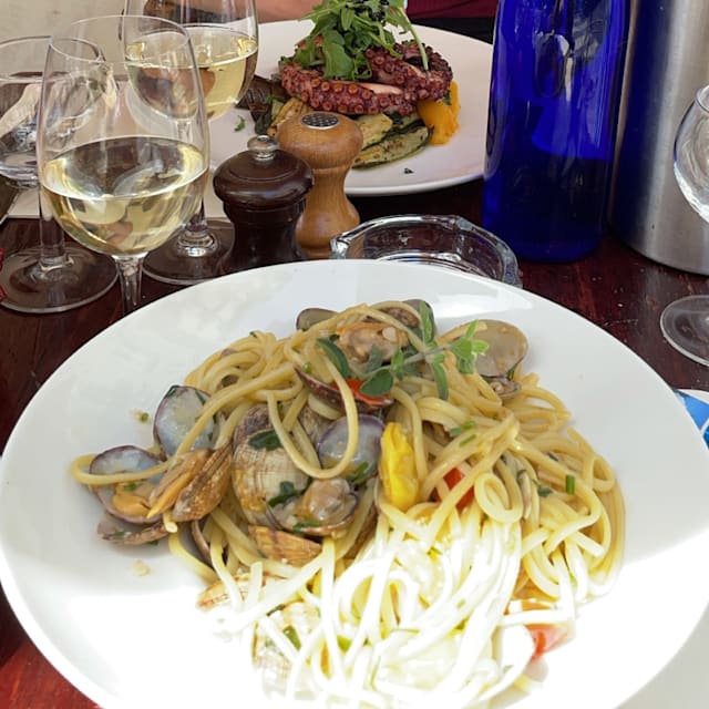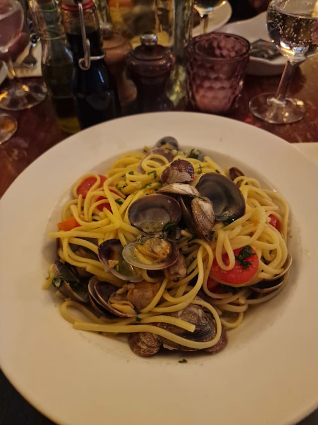 8/10Starter: antipasti de legumes was nice, but nothing special. Spaghetti alle vongole was, apart from a generous amount of vongole, a bit disappointing. Pasta was not al dente, slightly overcooked and it missed the typical pungent / sweet taste this dish should have. Wasn’t the worst ever, but could definitely be improved. Staff was welcoming and friendly, efficient and attentive too
