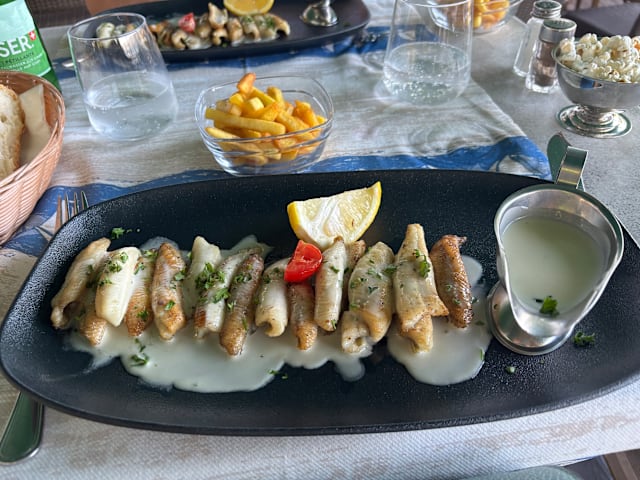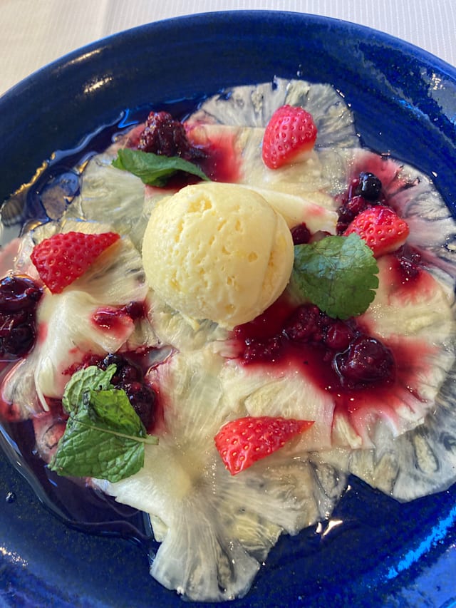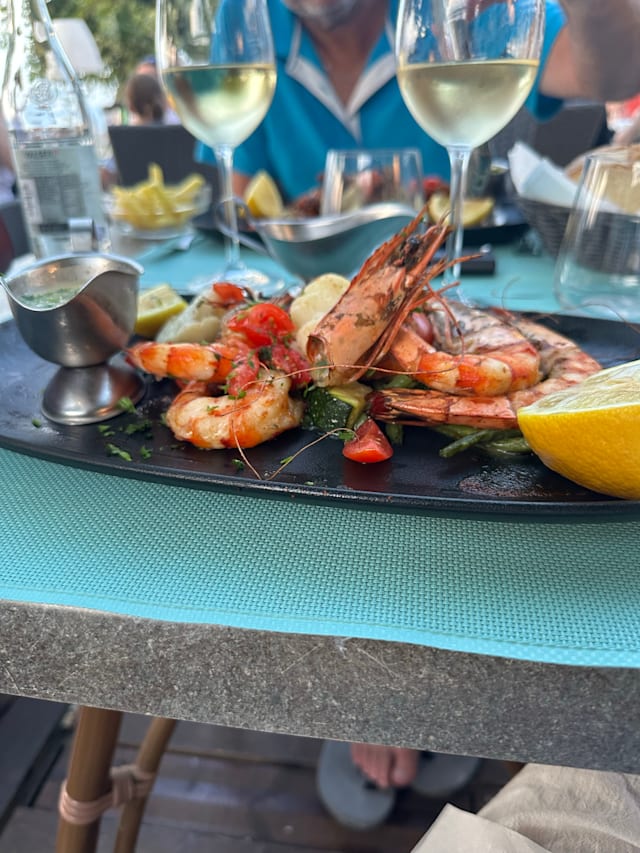 10/10Great reception and service from the staff, lovely ambience on the outside terrace, delicious local fish and good wine list.
