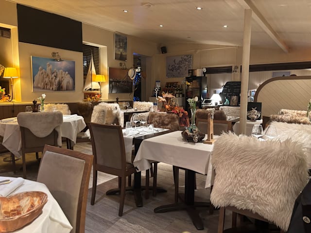 8.5/10Very nice restaurant by the lake, excellent view, my omble chevalier (fish from the lake) was an excellent choice, my friend had fera (another local fish) but it was a bit less exciting.