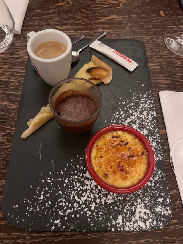 10/10Simply the best deserts we’ve ever had. The Creme brûlée and three deserts in a plate were superb. A simple but perfect and authentic French restaurant