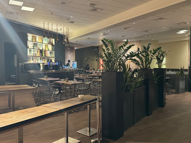 5/10It is the innercourt of a hotel. Several hotel guests use this placd for smoking while people are eating right next to them. Small portions of food and nothing special. Too expensive for what is delivered.