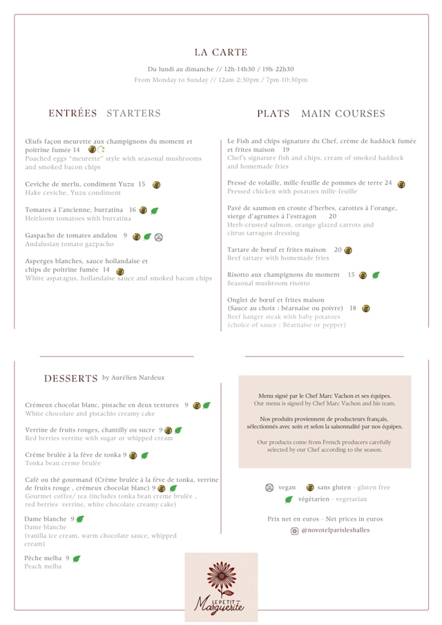 8.5/10The place is nice and calm, the waiters are awesome. Good is good. The only thing is that the 'jardin' part is not existing any more, so you so not have that charming space. Place is beautiful anyway.