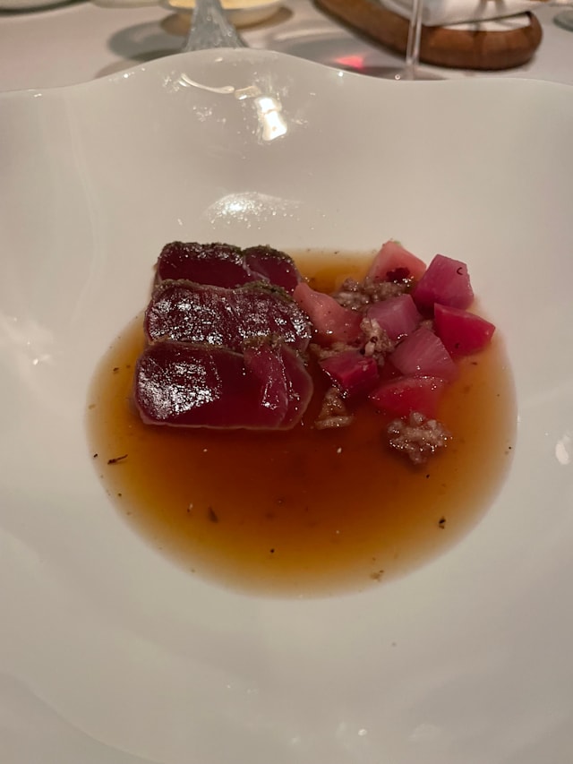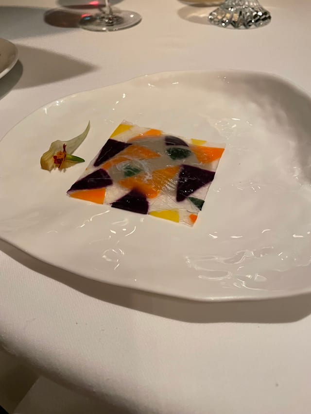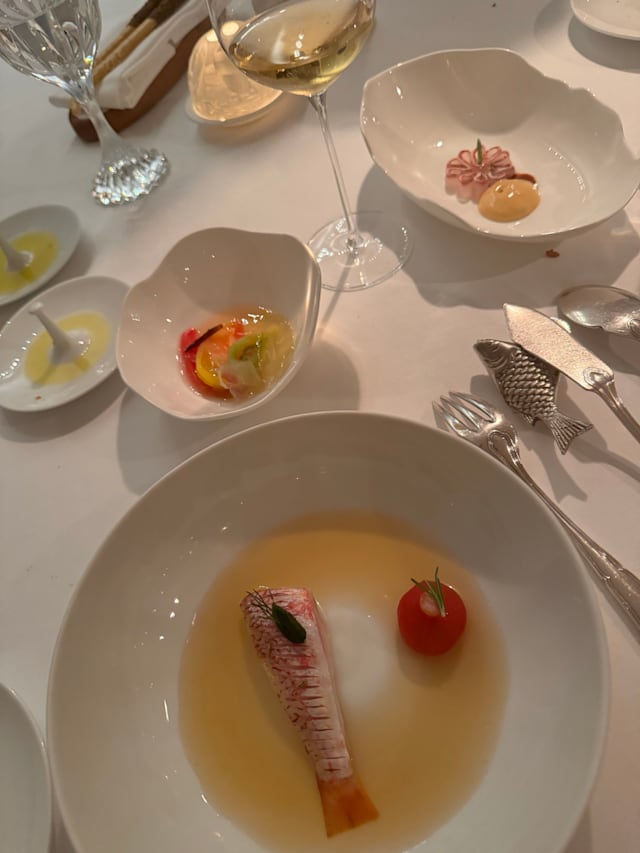 6.5/10This was the most disappointing experience at a Michelin starred restaurant, at any star level, that I’ve ever had (note: I’ve eaten at dozens of M* restaurants around the world, including 9 different 3 stars). Our experience was so bad it’s actually making me question the fidelity of the Michelin rating system overall. The menu is very, very fish forward. In fact, all dishes (on this particular menu) revolve around seafood dishes from the area. Counterintuitively, the WORST part of every plate was the fish. All other ingredients were beautifully selected, prepared and presented, but the fish was either flavorless or unpleasantly pungent (“fishy” one might say). Usually when I leave a three star I am uncomfortably full; this time I was hungry. We spent the 10 days prior to this dinner eating a Michelin * restaurants in the area eating ALL THESE SAME fish and loved them, so it is mind blowing how at this restaurant all the fish we cherished in the days before were so bad.