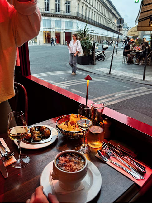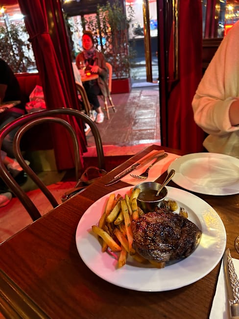 10/10An ideal French Brasserie. First off, the food was amazing. I had the Argentinian steak and as a meat lover, it was honestly perfect for this price range. The owner is Argentinian so that helps. As a Belgian I can tell you that the fries were very good as well, and the mayonnaise home made! Fine wines and a great food experience over all. Not to forget the wonderful mousse aux chocolat as a dessert topped with fleur de sel and olive oil (!). What a banger combo. On top of that the staff and their service was extremely helpful and kind, probs to these guys. Also the restaurant was very beautiful over all, great atmosphere. Beautifully designed and colored - typically French. And it being next to the Louvre makes even more remarkable as the prices were very affordable. Portions are not enormous though but still sufficient. (I’m a big eater) Will definitely come here again each time I’ll visit Paris. Merci!