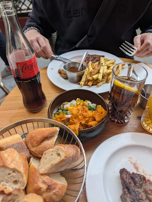 10/10An ideal French Brasserie. First off, the food was amazing. I had the Argentinian steak and as a meat lover, it was honestly perfect for this price range. The owner is Argentinian so that helps. As a Belgian I can tell you that the fries were very good as well, and the mayonnaise home made! Fine wines and a great food experience over all. Not to forget the wonderful mousse aux chocolat as a dessert topped with fleur de sel and olive oil (!). What a banger combo. On top of that the staff and their service was extremely helpful and kind, probs to these guys. Also the restaurant was very beautiful over all, great atmosphere. Beautifully designed and colored - typically French. And it being next to the Louvre makes even more remarkable as the prices were very affordable. Portions are not enormous though but still sufficient. (I’m a big eater) Will definitely come here again each time I’ll visit Paris. Merci!