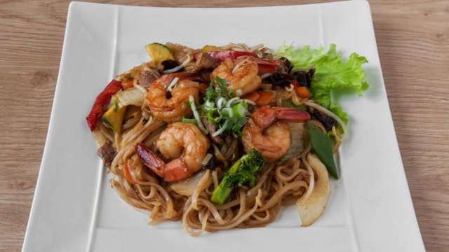 crevettes, d’émincés de bœuf et de 2 pièces de nems