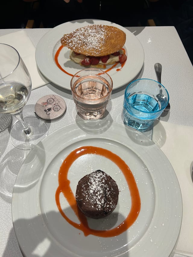 8.5/10We really all (4 of us) enjoyed our meal at this restaurant. Staff was very variable in their attitude: one was great and one seemed annoyed at anything we asked (including the bill!). Food was really tasty. We all loved our steaks or duck dishes. Dessert were all very tasty. I think the café gourmand is the best option to try all their delicious desserts. They also have a good selection of wines. We were on the covered terrace which was nice but did not give us much privacy. The main room had a freezing cold air con' on, what a pity. Overall a very positive experience!
