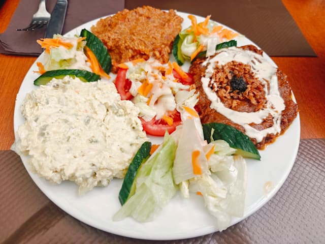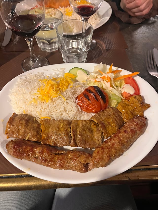 Servi avec son riz iranien et salade - ou avec des frites maison à préciser lors de la commande