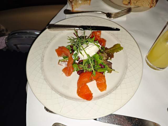 - Saumon fumé par nos soins au bois de hêtre, crème fouettée à la vodka
