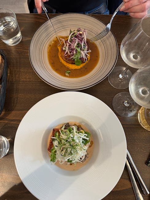 8.5/10I had a very pleasant dinner with friends, we had the starter, main course and dessert formula, accompanied by the server's recommendation for the wine. The food was very good, unfortunately although we ordered on time there were not enough starters, and we received different ones than the ones we had ordered. The main course was delicious, and both dessert options were excellent, finger-licking good.