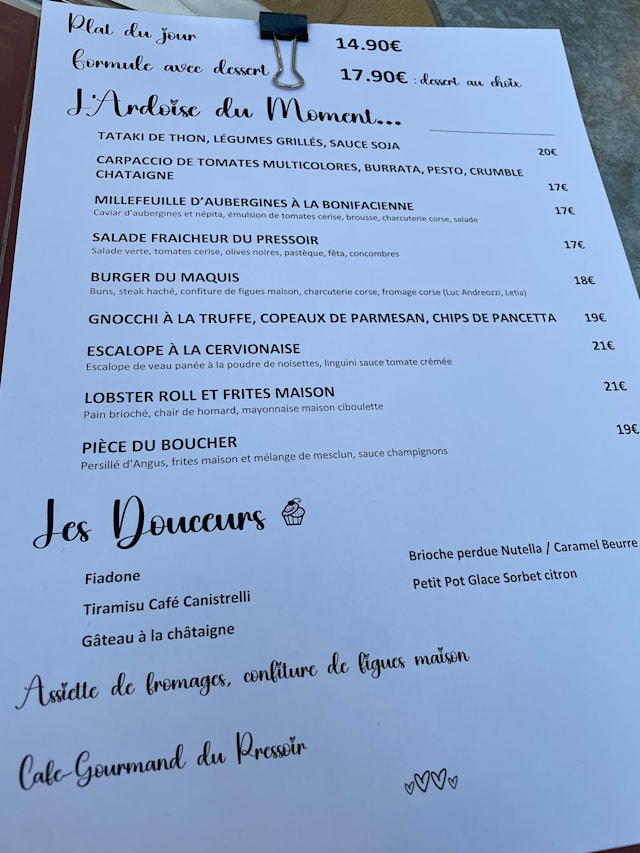 Cuisine avec des produits frais de Qualité aux accents de Corse.