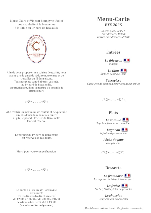 Yes, Le Prieuré de Bazainville has availability on TheFork currently. Do not hesitate, reserve your table on TheFork!