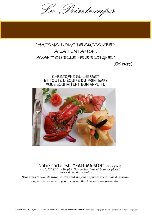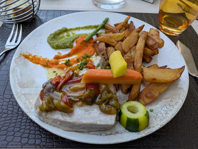 8/10One of the few good restaurants in Montelimar open on Monday night and a sound choice. Its a hotel restaurant and so lacks quaint charm but we were able to eat outside on a lovely evening. Food is good if not too adventurous. Good wine available.