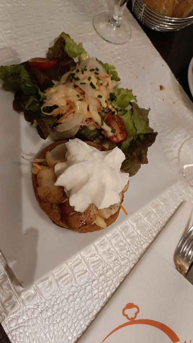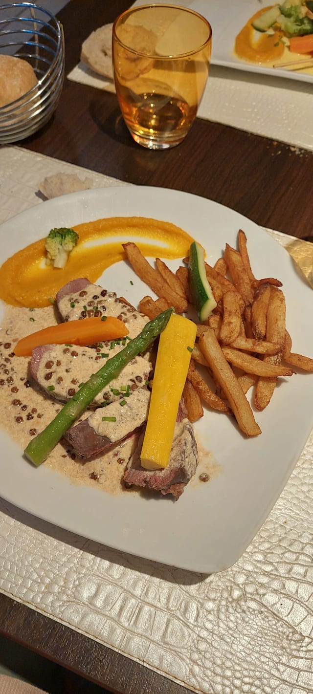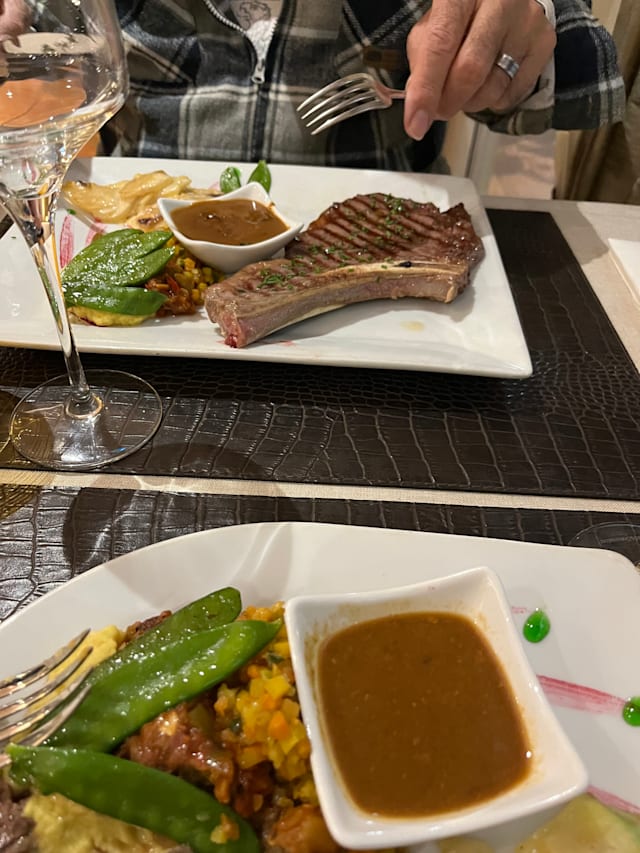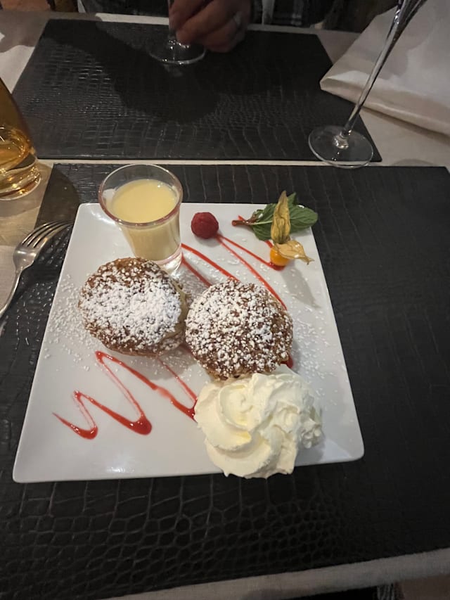 3/10Champagner was obviously served from an old bottle, flat, no bubbles. Terrine de foie gras tasteless. Served with simple white bread. No brioche or even toast. Magret de canard dry with broccoli cooked to death. Environment is not very charming.