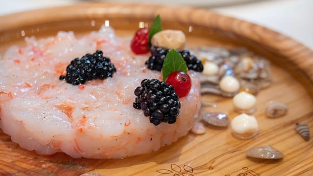 - Gambero rosso, scampo, ostrica, tartare di tonno, tartare di orata e tartare di salmone