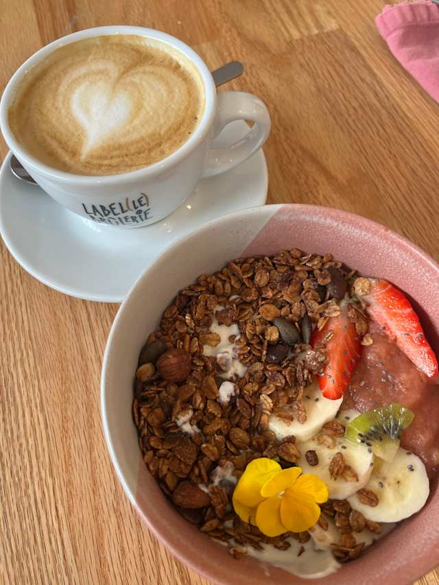 - Bol de granola à la cannelle, yaourt végétal, sirop d'érable et fruits