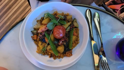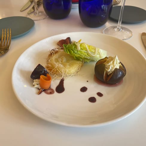 9.5/10One of the best meals I’ve had at this price point. Beautiful plates to the eye and to the palate. Friendly waiting staff and dog friendly as well. The Pommery Blanc des Blancs is also a beautiful champagne at a fair price. The only blemish on a beautiful experience is that the interior design is slightly dated, but other than that a great dining experience and we’ll be back for sure!