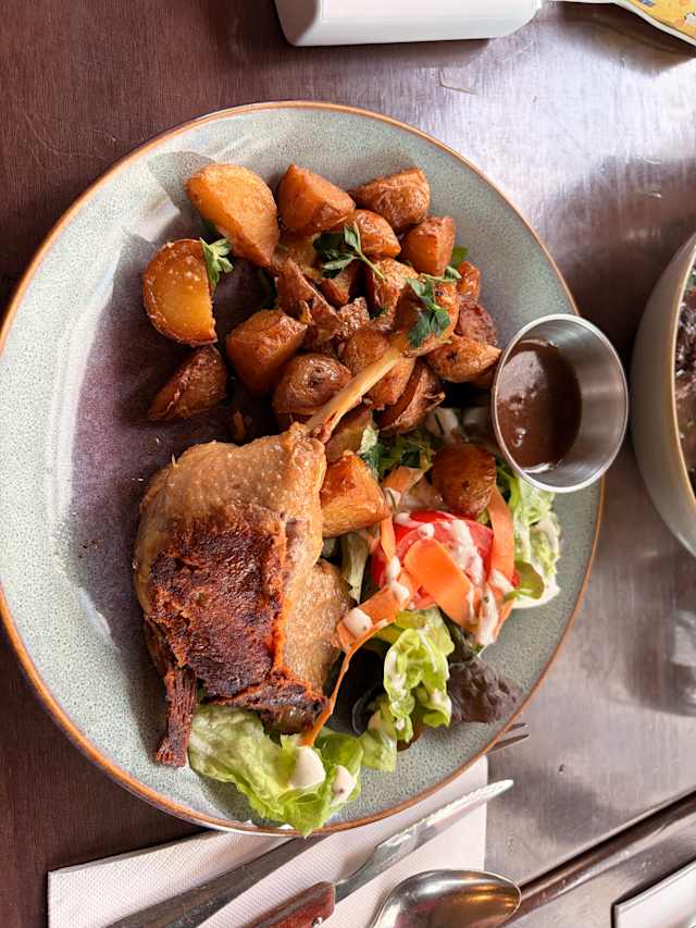 10/10Friendly staff had our table ready for our reservation. No rush to order. Drinks arrived and first courses. Burrata salad and onion soup. Half the group got the beef b(sp) and the other one the duck. Great desserts and hot chocolate to end the meal. A neighborhood treat.