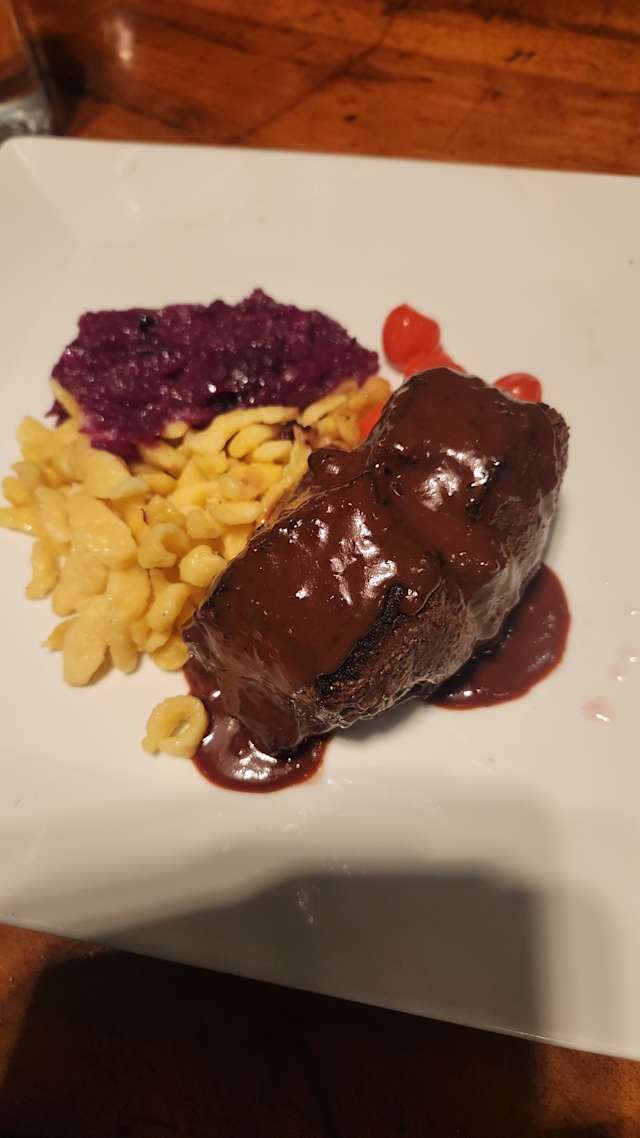 6/10Salade: Unfortunately the salade war cheap and parially rotten. It looked not so nice. Main course: Venison with Spätzli and morel sauce was very good and nicely displayed. Tiramisu: outstanding Service: below average Bill: They charged two different beers instead of one, as the print of the bill were to weak, I didn‘t realize it while paying. I assube this could be a tactic to reduce the loss of the 50% discount?