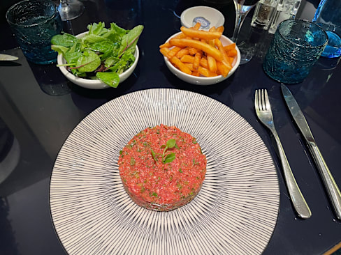 10/10Don’t wait just go. We had an excellent dinner and service was above and beyond. Showed up early for the bar menu which was plenty enough food with massive portion sizes. Drinks were excellent. Our waiter was the bartender and have not had anyone so attentive or accommodating as him in a long time. He made our night and gave us an excellent experience. I had the beef tartare and it was the size of a giant hamburger and some of the best tartare I’ve ever had. The restaurant was located in a hotel and not well advertised so we were the only ones in there for a bit. It’s something you should try in Paris for a consistent good hardy Parisian meal.