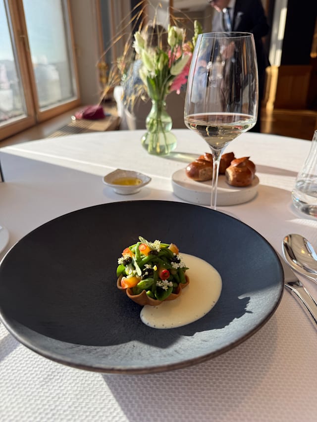 10/10⸻ The place is stunning: it is perched on the mountain, offering a panoramic view of Montreux, Lake Geneva, and the Alps. The restaurant has a beautifully refined, elegant, and contemporary décor that elevates the experience. The food is delicate and flavorful, with an author’s culinary approach that showcases local ingredients in a creative way. Every dish has an exquisite taste and impeccable presentation, combining French technique with Swiss identity. An unforgettable gourmet experience.