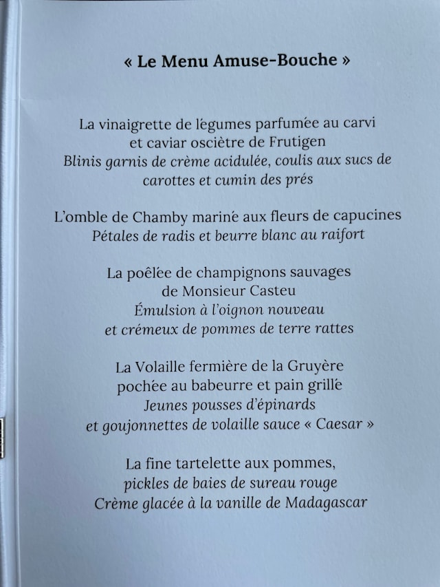 10/10This place was amazing. The views of lake Geneva were spectacular. Staff very attentive and were on point the whole evening. The tasting menu was great my wife and I loved everything we were served. Loved the use of local and region ingredients made the meal even more special