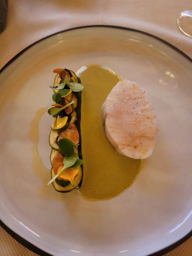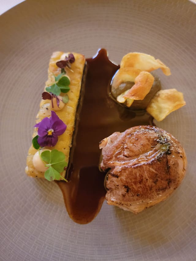 Pithiviers cuit minute, betterave, compotée d'oignons roses, parmesan et sauce à la truffe d'été