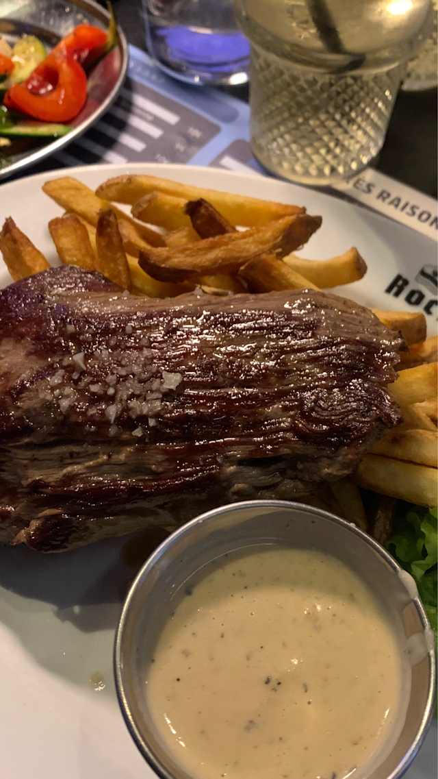 - Bœuf haché, salade, tomates, camembert, sauce rock privé