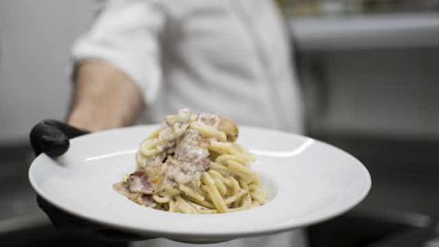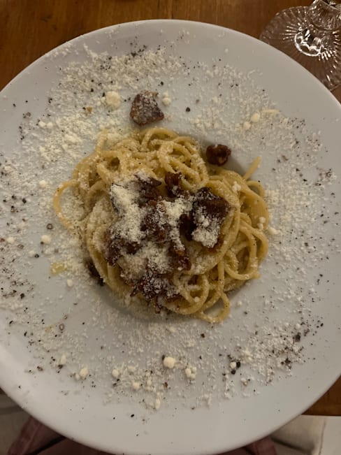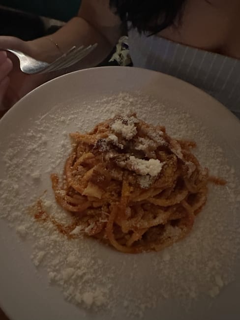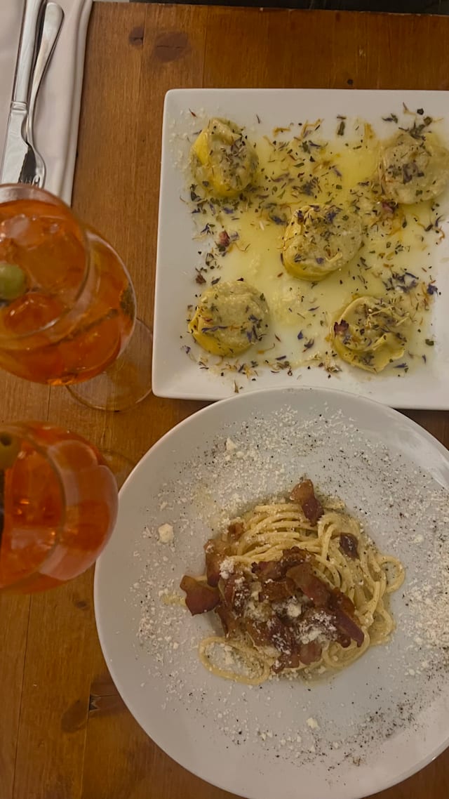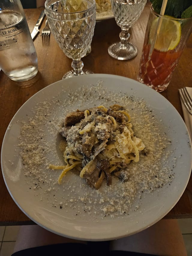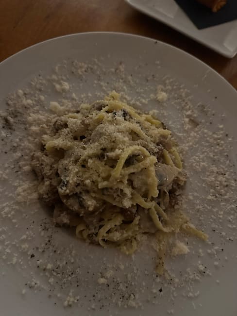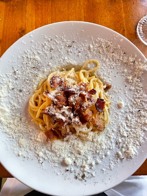 7.5/10Good service, location and environment, but the food could be better. We ordered a bruschetta and carbonara and both were too dried.