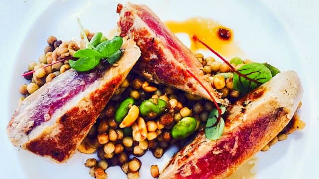 8/10Beautiful setting on a nice patio with gorgeous views of the city. Across from our wonderful Villa Maïa Hotel-best hotel in town! Service was very good, even though they would not make us martinis. Wine and spirits list is quite adequate. Menu was limited. Tomato plate was good, entrees lacked flavor (white fish was however perfectly cooked), dessert dish was lovely as was the cheese plate.