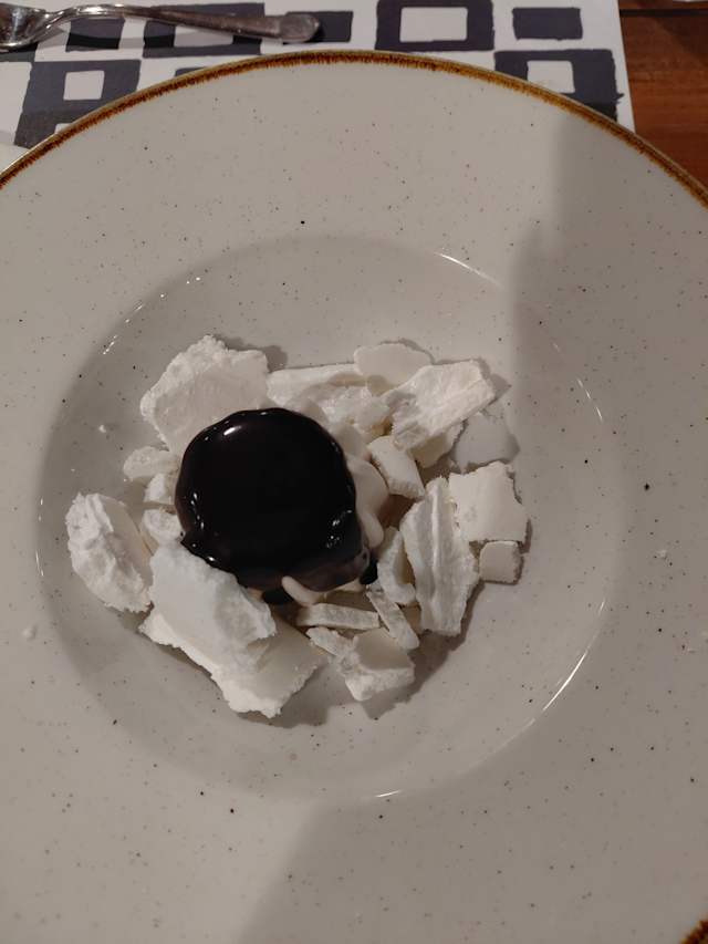 - Namelaka al cioccolato bianco, castagne e meringa con salsa al cioccolato fondente
