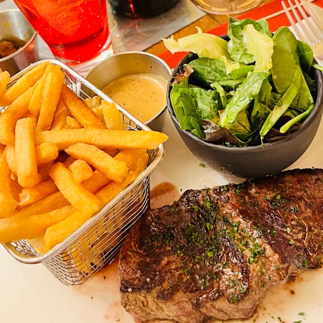 8/10The waiters have a good portion of humor and are attentive. I recommend the onion soup, the magret de canard is quite special, it is sweet due to the apples and cranberries which unfortunately is overlaying the taste of the duck a bit too much.