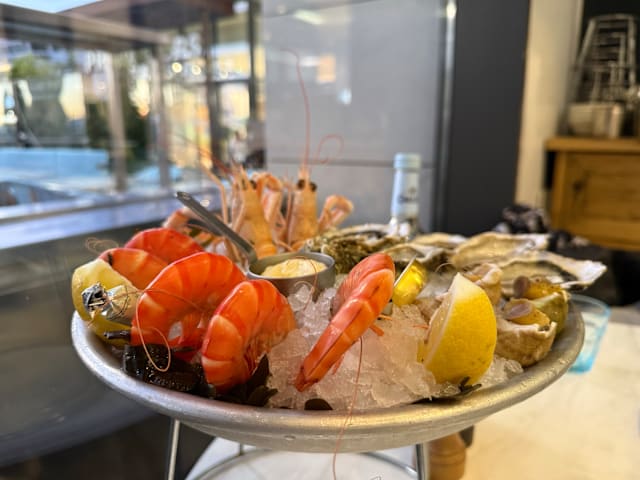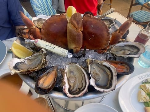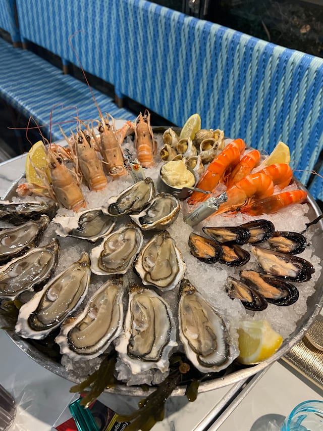 8/10Mixed feelings The view was breath taking beautiful sun set evening and pleasant sea breeze . It was in a mall so we could see same view without the restaurant too. Ambience , seating and arrangement was top notch . Menu was only in French in touristic place they could have had one in English too but good is a savior .and waiters were kind enough to explain. Food is where we were little disappointed. It’s wasn’t bad of course not , it was good food but for the amount which we paid didn’t get the satisfaction . Lobster , ouester , seashell were cooked well but taste was ok . The sauces and bread helped . Shrimps were great ;)the experience of such a big platter was amazing but the taste was okish. Maybe it’s my personal feeling others might appreciate . Try it out for yourselves ..