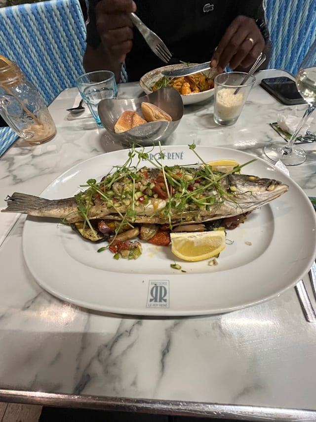 9.5/10This was a great experience with a delicious platter of fresh coquillages. served with friendly aplomb by a great staff and all of it...all of it...despite The Fork emailing me a message while we were on a crowded port bus heading from our cruise ship to Le Roy Rene. Your ¨The Fork¨ email read that you regretted to inform us that Le Roy Rene could not honour our reservation. Well, we said nothing , we walked up to a delightful waiter, asked if they could accommodate us and he escorted us to the best two top on the terrace and we had a spectacular meal. Kudos, huzzahs and thanks to the owners and staff of Le Roy Rene and to the Fork, the polar opposite for upsetting us with an email that almost stopped us from having this terrific experience. Get your act together.