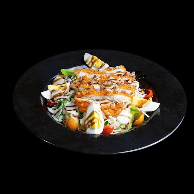 - Salade, tomate, poulet pané, oeuf, parmesan, sauce césar