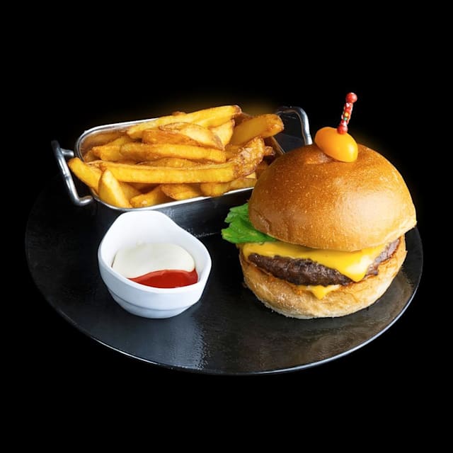 - Salade, cheddar, steak hachée, sauce du chef + accompagnement frite