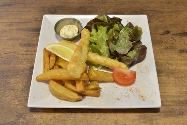 - Pain brioché, galette de pommes de terre, émincé de légumes, tomates, mozzarella, origan. Servis avec salade et frites