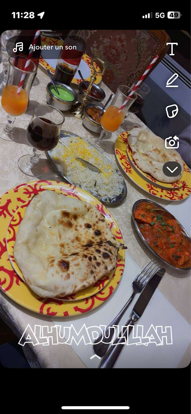 - (Plateau composé d'épinard, lentilles jaunes, mix légumes, raïta, riz et cheese nan)