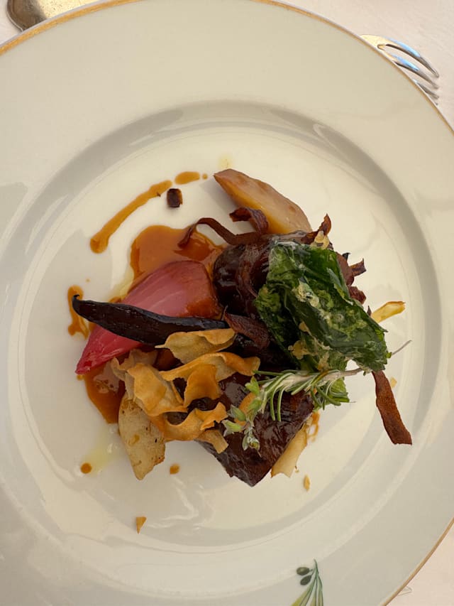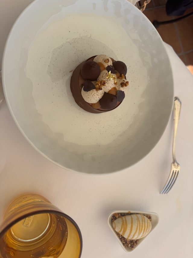 7.5/10We love to eat well and have been to restaurants around the world including many Michelin-starred. The property and view from the terrace are gorgeous. The dress code is supposedly "formal", so we and a several other guests made an effort to dress well. Nevertheless, others were admitted in flipflops and wrinkled T-shirts. Wine list is expansive and expensive as expected. Service was fine, with some glitches. We ordered the least expensive "market" menu, which was a disappointment. Second amuse-bouche was the highlight, an inventive corn foam dish, but it went downhill from there. Next, the "egg" appetizer also featured on the more expensive menu was a runny egg mixed with a couple slices of vegetables and salami. Next, the pork loin was lots of meat but tough and both my wife and could not finish it as half the pieces had a foul taste. Dessert was an uninventive chocolate mousse and ice cream on a piece of graham cracker. Overall, a general lack of interesting flavors or textures.
